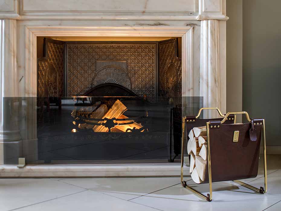 Дровница с кожаной вставкой FG-12029 полированная латунь